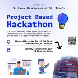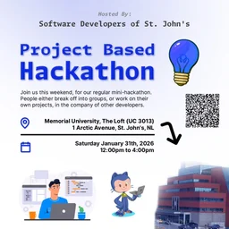 The Software Developers of St John's is a group with the goal of meeting monthly for "mini-hackathons" where software developers get together for a day, code and learn together, then share what they've learnt.