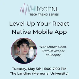 Signup for event on members.technl.caJoin techNL for our upcoming workshop: Level Up Your React Native Mobile App, with Shawn Chen.